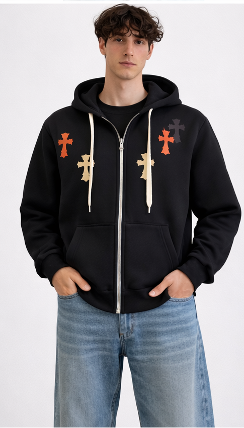 "CROSS" BLACK ZIP HOODIE